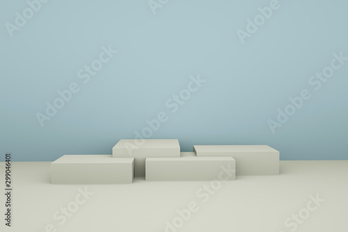 blue booth 3D rendering background wall,White display table simple rendering background wall, can be used for banner design items display background.