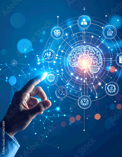 Blue brain human background. Artificial Intelligence and Cognitive Interface Between Human.