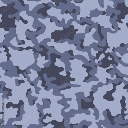Blue camouflage military background, seamless vector illustration for print on clothes, paper, fabric