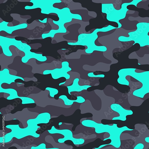 blue Camouflage texture seamless pattern. Abstract modern military camo background for fabric and fashion textile print. Vector illustration.