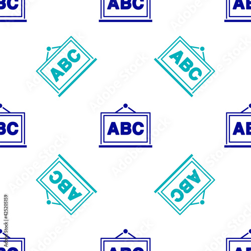 Blue Chalkboard icon isolated seamless pattern on white background. School Blackboard sign. Vector