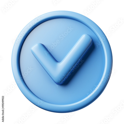 Blue Check Mark Icon in 3D Style on Transparent Background for Graphic Design Use