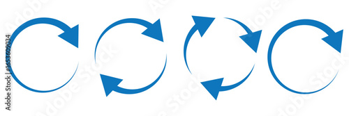 Blue circle arrows icon set. Round reload sign, repeat icon, rotate arrow symbol, arrow pictogram, refresh reload rotation loop sign set