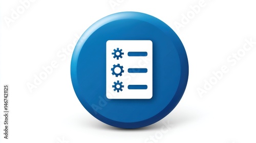 Blue circular button or icon with gears or settings symbol representing computer software controls
