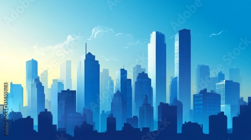 Blue City Skyline at Sunrise