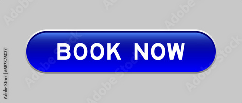 Blue color capsule shape button with word book now on gray background