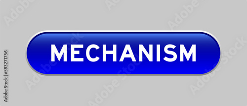Blue color capsule shape button with word mechanism on gray background