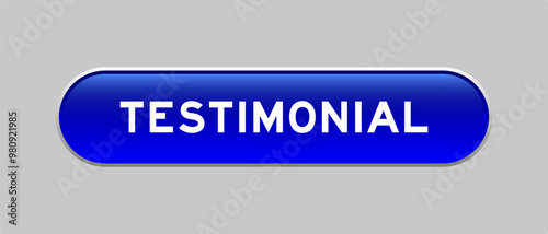 Blue color capsule shape button with word testimonial on gray background