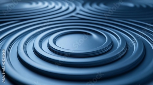 Blue Concentric Circular Shapes Art Design Pattern Background with Swirl Ornament