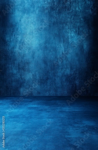 Blue Concrete Room with Textured Wall and Moody Lighting Effect