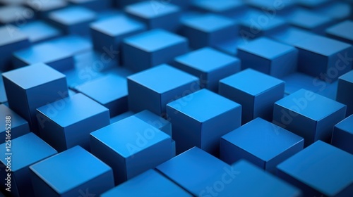 Blue Cubes Abstract Background, 3D Render, Technology