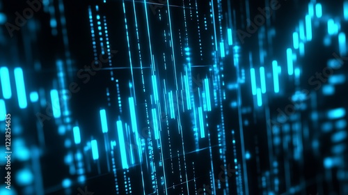 Blue Digital Lines and Waves Creating a Modern Technology and Data Visualization Art : Generative AI