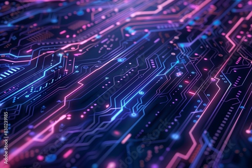 Blue digital motherboard in abstract cyberspace. Hardware technology, computer line code. Science energy communication, integrated engineering circuit board. Electrical micro