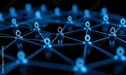 Blue Digital Network Visualization with Connected Nodes and Circles