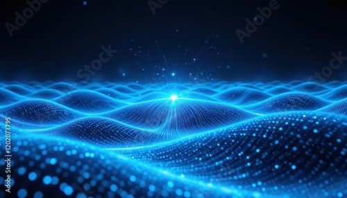 Blue digital wave glowing, dark background, network, technology, website banner
