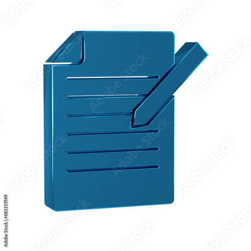 Blue Document and pen icon isolated on transparent background. File icon. Checklist icon. Business concept.