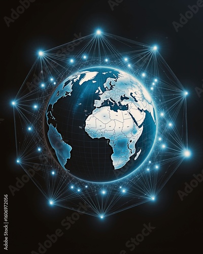 Blue Earth Globe Connected by Digital and Bright dots showing digital connectivity all over the world