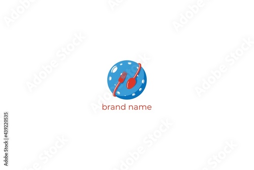 Blue Earth Moon Planet with Spoon and Fork for Restaurant Bar Cafe Logo Design Vector