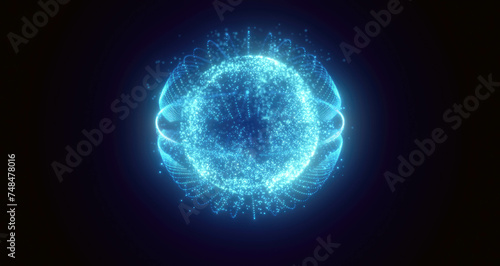 Blue energy magic circle sphere ball of futuristic waves and lines of particles of atom energy and electricity. Abstract background