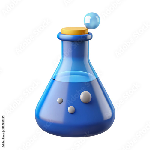 Blue Erlenmeyer Flask with Bubbles A 3D Render of Scientific Equipment for Experiments and Lab Designs, transparent background