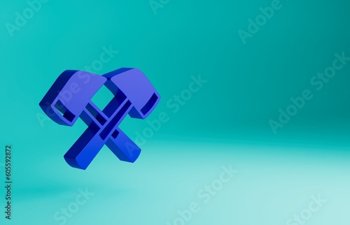 Blue Firefighter axe icon isolated on blue background. Fire axe. Minimalism concept. 3D render illustration