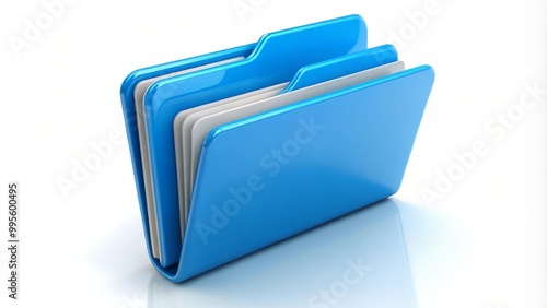 Blue folder icon standing on white background representing data storage