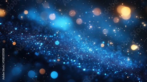 Blue glitter swirl, bokeh background, cosmic dust, festive design, website banner