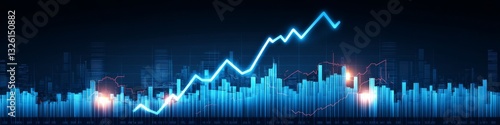 Blue, Glowing, Ascending, Dynamic Line Graph With Bars, Business Growth Or Financial Market Concept.