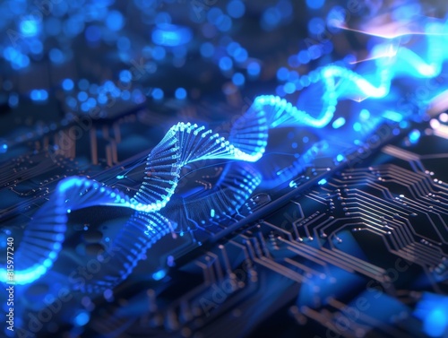 Blue glowing circuit board with electronic components