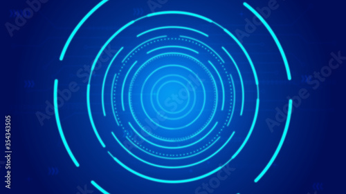 Blue glowing coils make up internet science and technology concept background.