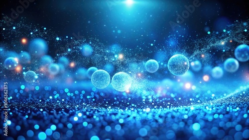 Blue glowing particles floating in a micro world setting with depth of field and bokeh effects, blue, glowing
