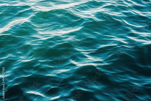 Blue green surface of the ocean in Catalina Island California with gentle ripples on the surface and light refracting , ai
