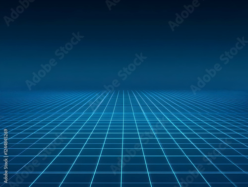 Blue Grid Background Extends into the Distance with a Subtle Perspective.