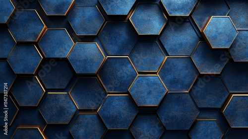 Blue Hexagonal Abstract 3D Background. Generative AI