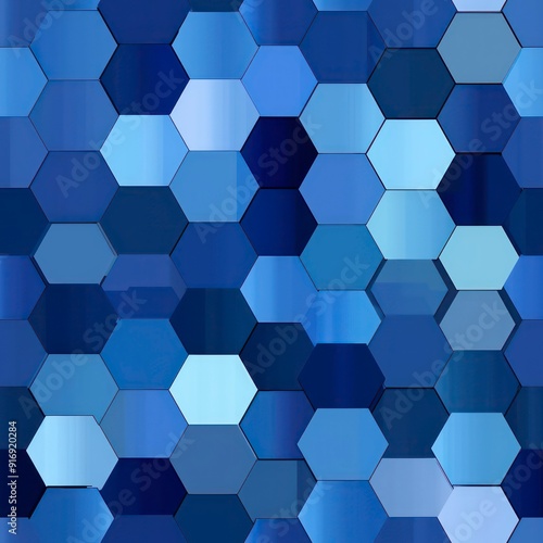 blue hexagonal tile pattern background in light and dark tones