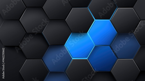 Blue Hexagonal Tiles Highlighted on Dark Geometric Background