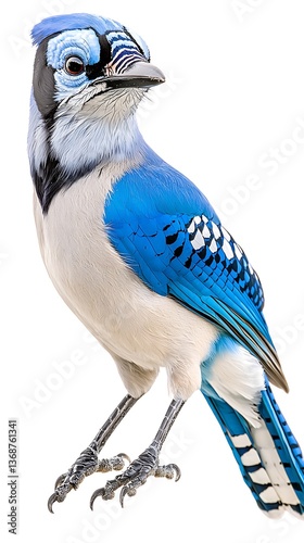 Blue Jay Bird Portrait with White Background.