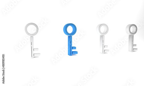Blue Key icon isolated on white background. Minimalism concept. 3D render illustration
