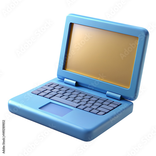 Blue Laptop AI 3D Icon for Digital Work and Remote Computing Concept