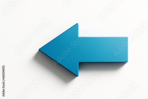 Blue left-pointing arrow symbol on white background with soft shadow and minimal design concept for direction or navigation interface element.