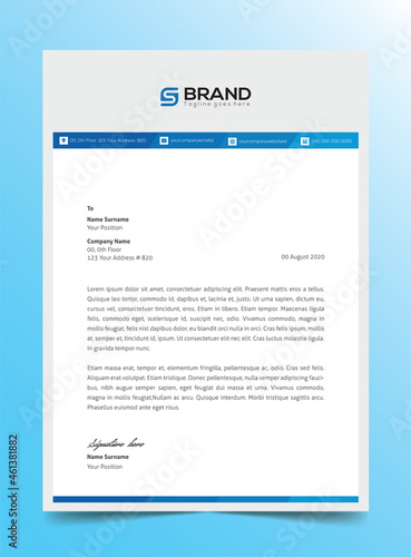 blue letterhead template design, gray letterhead background simple modern design cyan blue letterhead with gray background