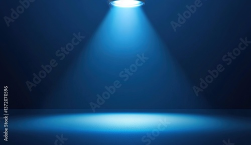 Blue Light Illuminates Empty Stage, Setting Dramatic Mood for Presentation, Showcasing Space, Ideal for Design Projects