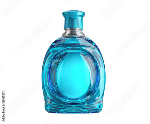 Blue Liquid in a Clear Glass Perfume Bottle with Silver Cap image graphic isolated on a transparent background