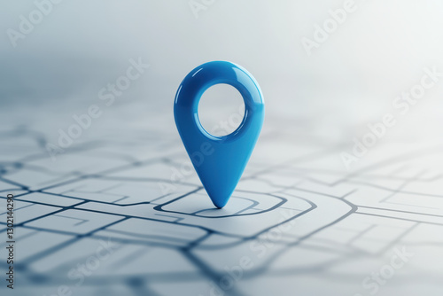 blue location pin icon stands prominently on map background, symbolizing navigation and direction. This conveys sense of exploration and guidance