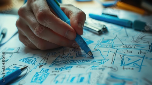 blue marker graph hand sketches data visualization on white paper cut out
