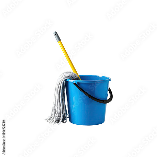 Blue Mop and Bucket Set Isolated for Cleaning and Housekeeping Concepts