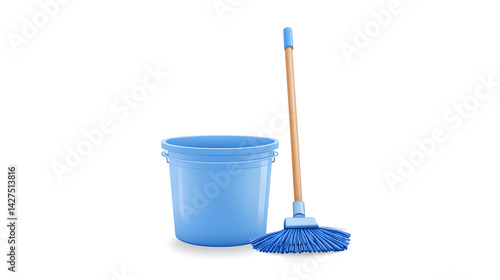 blue mop and bucket set on white background, ideal for cleaning tasks