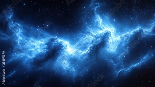 Blue Nebula Cosmic Cloudscape, Space Background, Astronomy