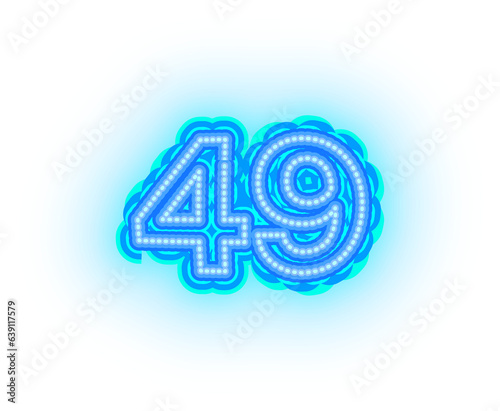 Blue neon alphabet letters, numbers, and signs on a transparent background
