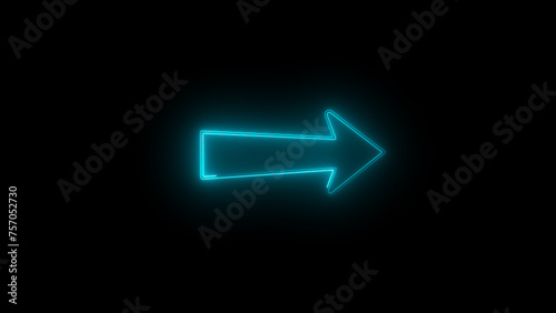 Blue neon arrow on a black background. Trending image for your design or presentation. 3d illustration